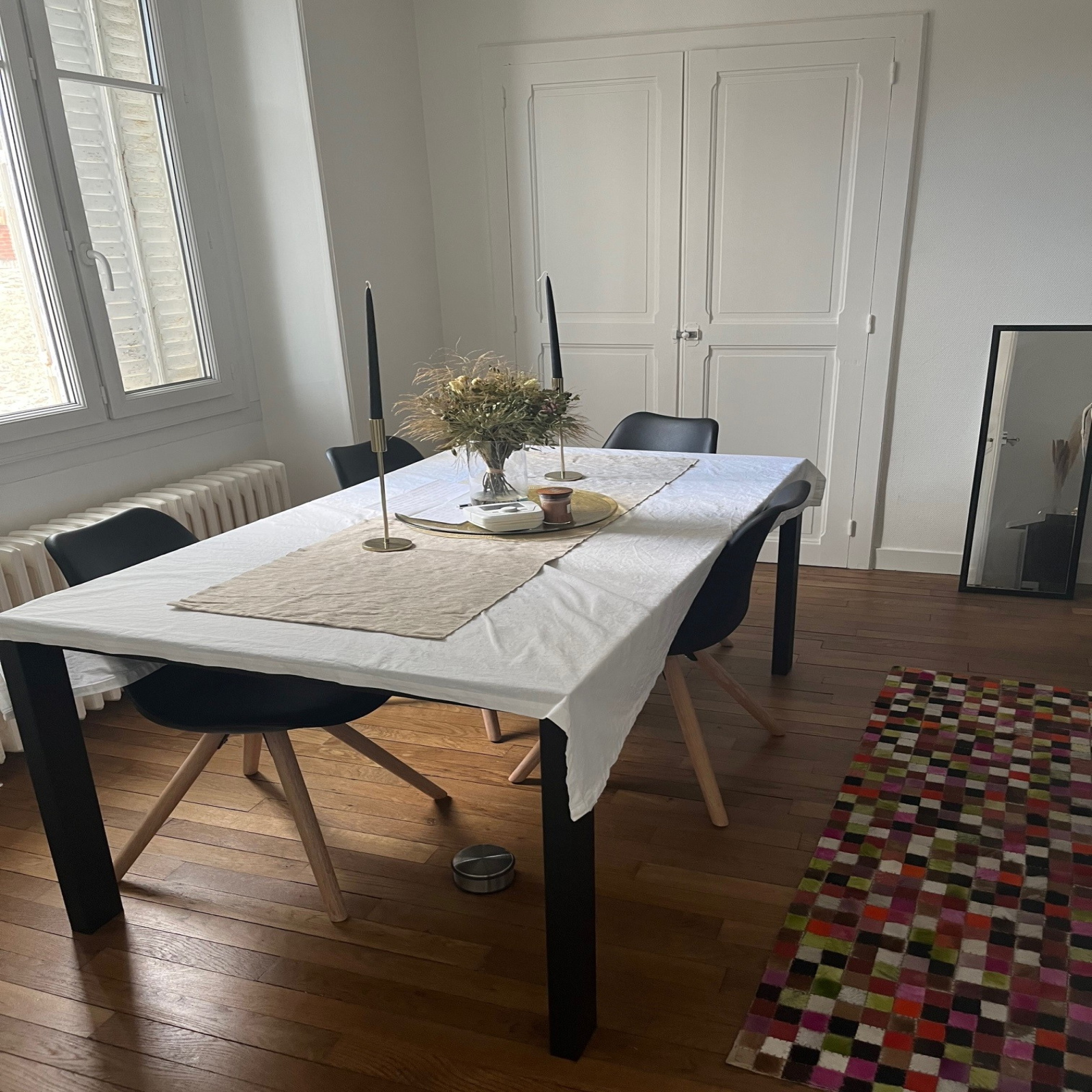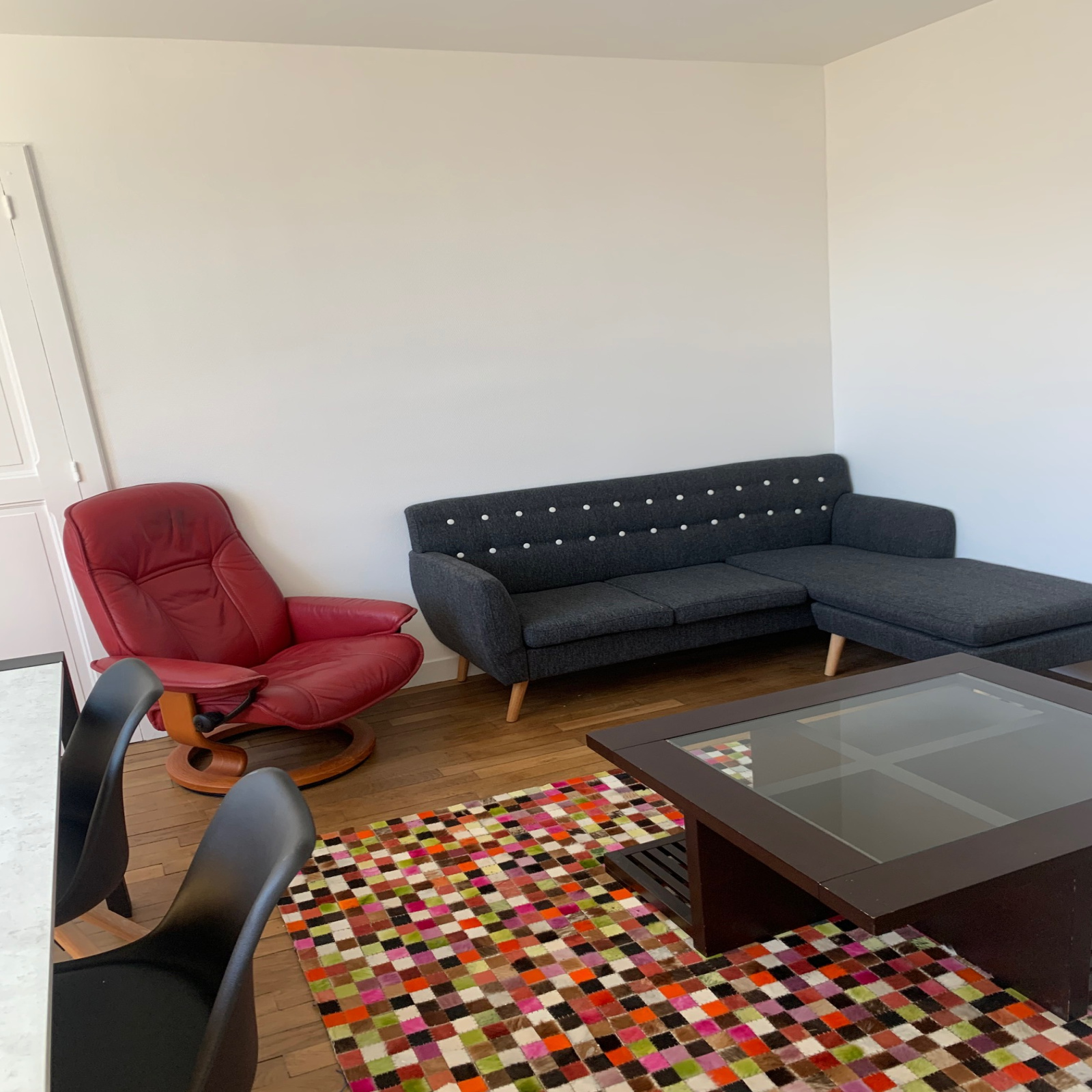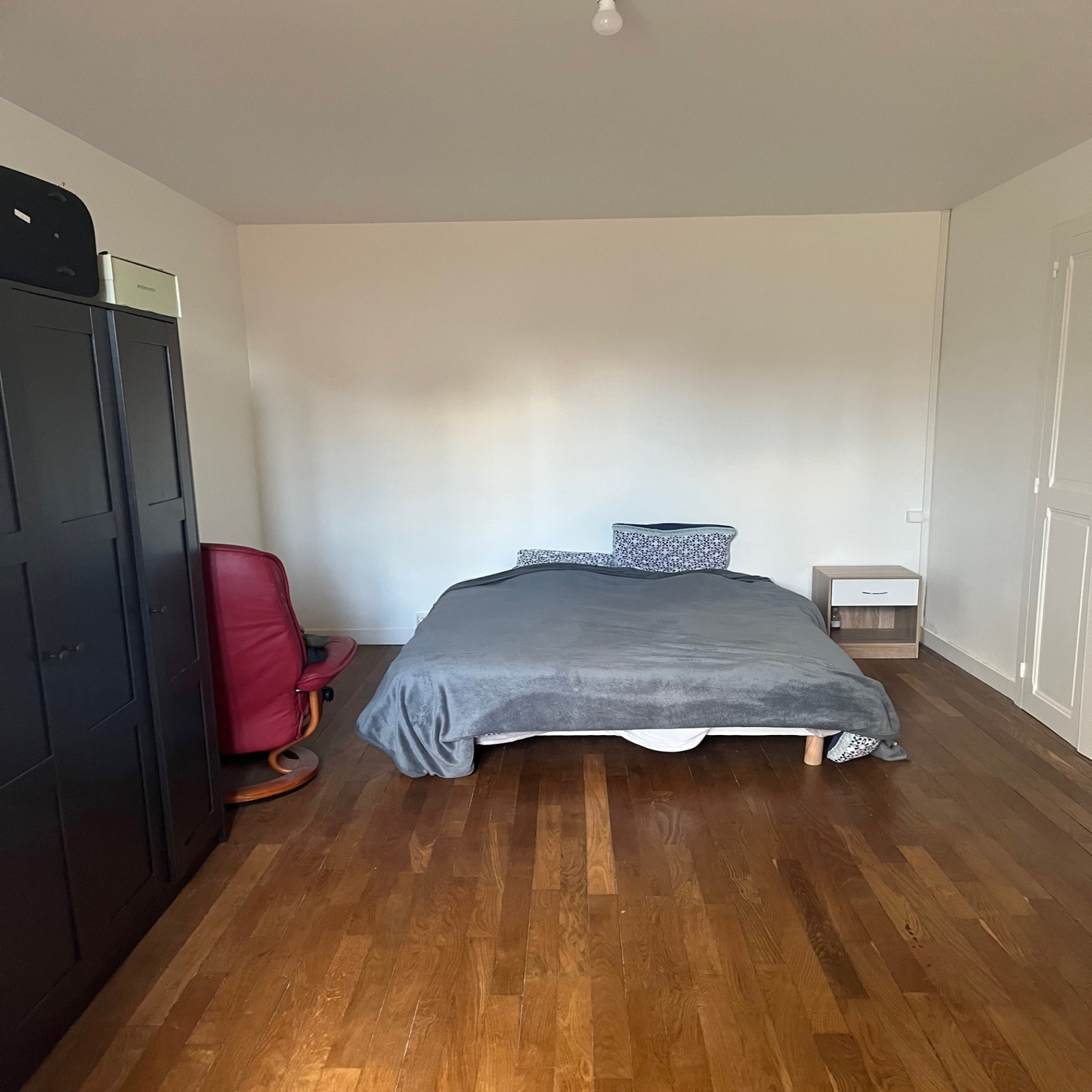 LAVAL, à proximité du centre-ville un grand type 2 rénové et meublé comprenant une cuisine aménagée et équipée avec un coin repas, un salon/séjour sur parquet et une grande chambre d'environ 20 m², une salle d'eau avec douche et WC.