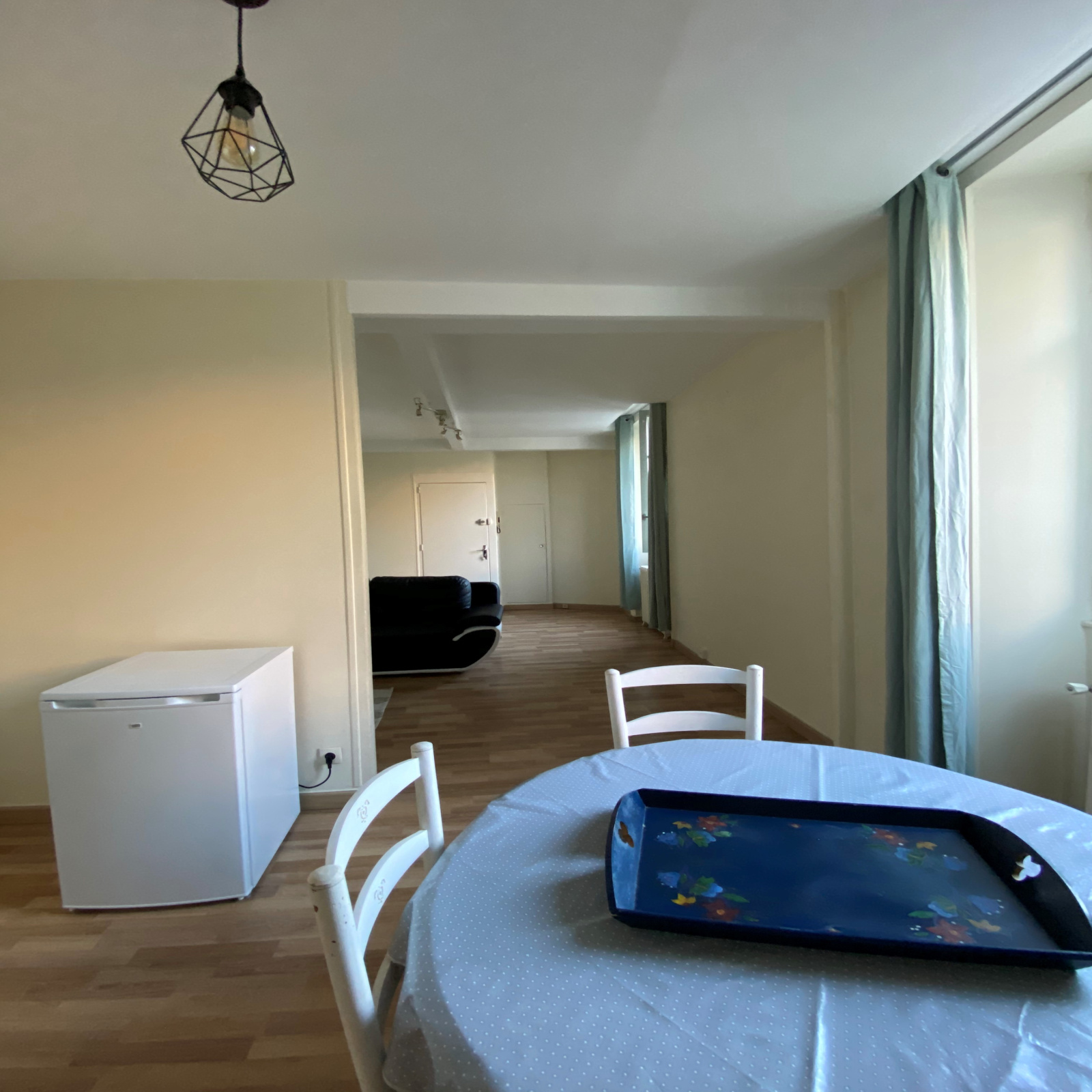 LAVAL, hypercentre, rive droite un appartement de type 3 entièrement meublé comprenant une pièce de vie lumineuse, une cuisine aménagée et équipée séparée, un dégagement desservant deux chambres avec rangements, une salle d'eau avec WC.