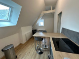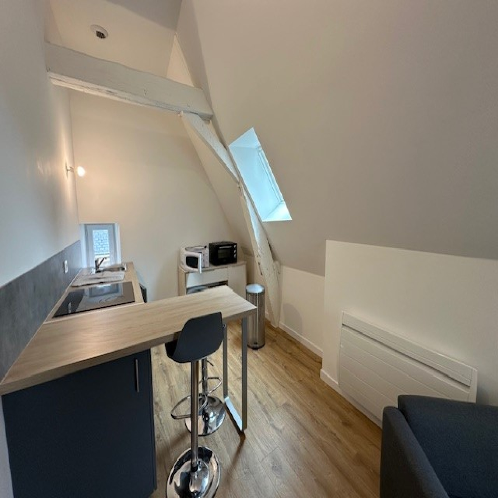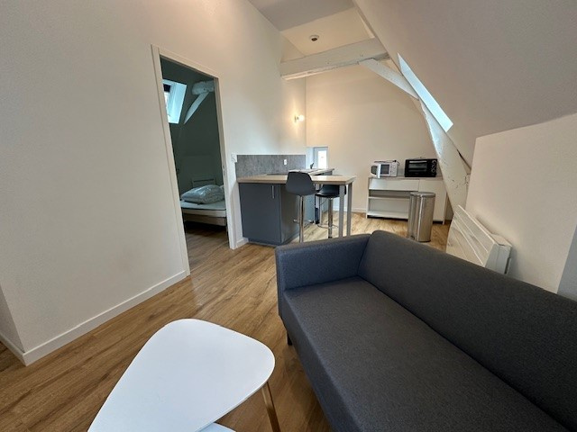 Appartement T2 meublé (vaisselle, LL) au 2ème étage composé d'une pièce principale avec coin cuisine équipée, 1 chambre et salle d'eau avec WC. Chauffage individuel électrique et double vitrage.Eau individuelle