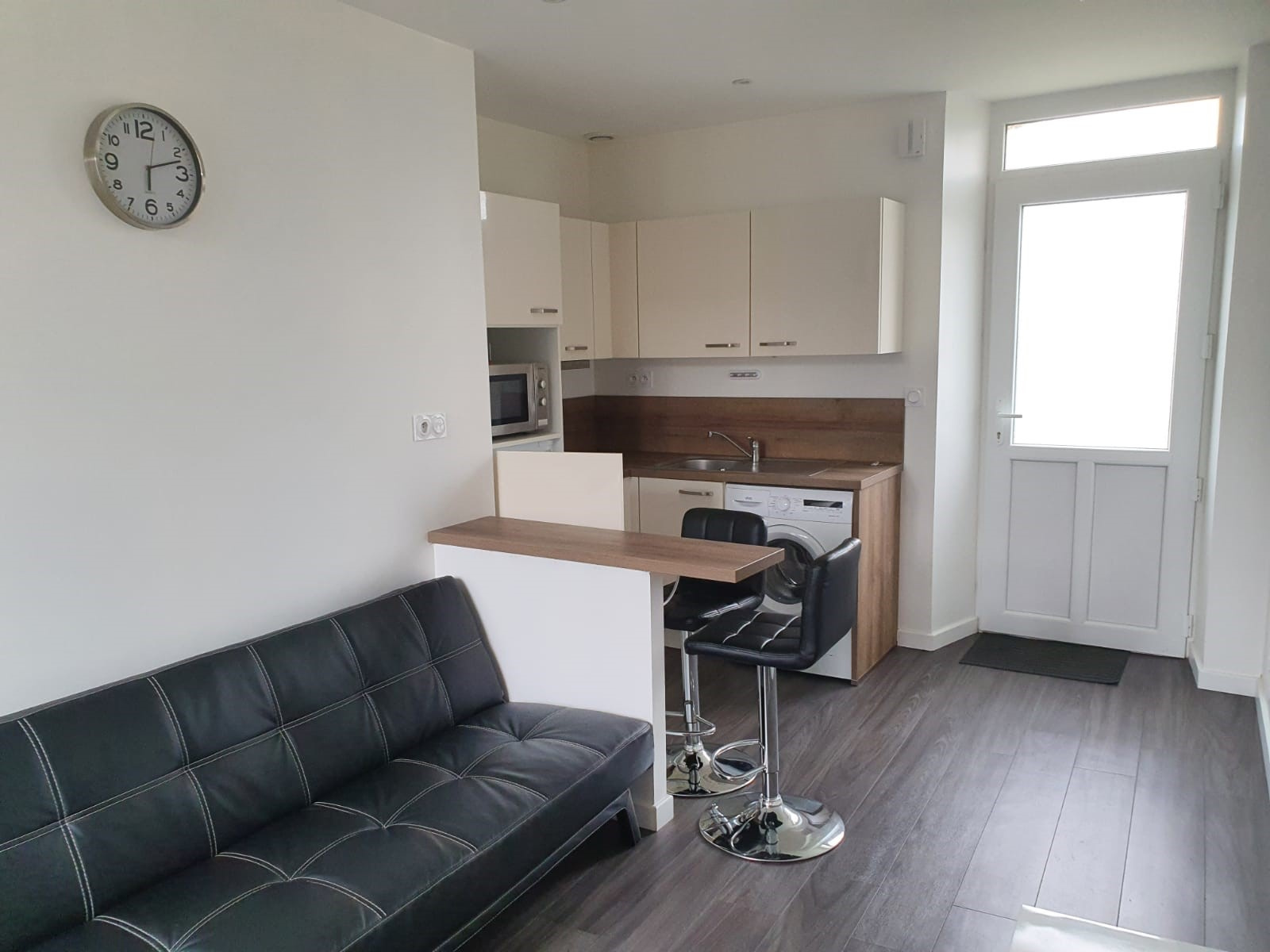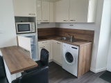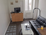 au 1er étage, appartement meublé comprenant : séjour avec kitchenette équipée (lave-linge), chambre, salle d'eau, wc. Chauffage individuel électrique. Eau par décompteur (compris dans les charges).