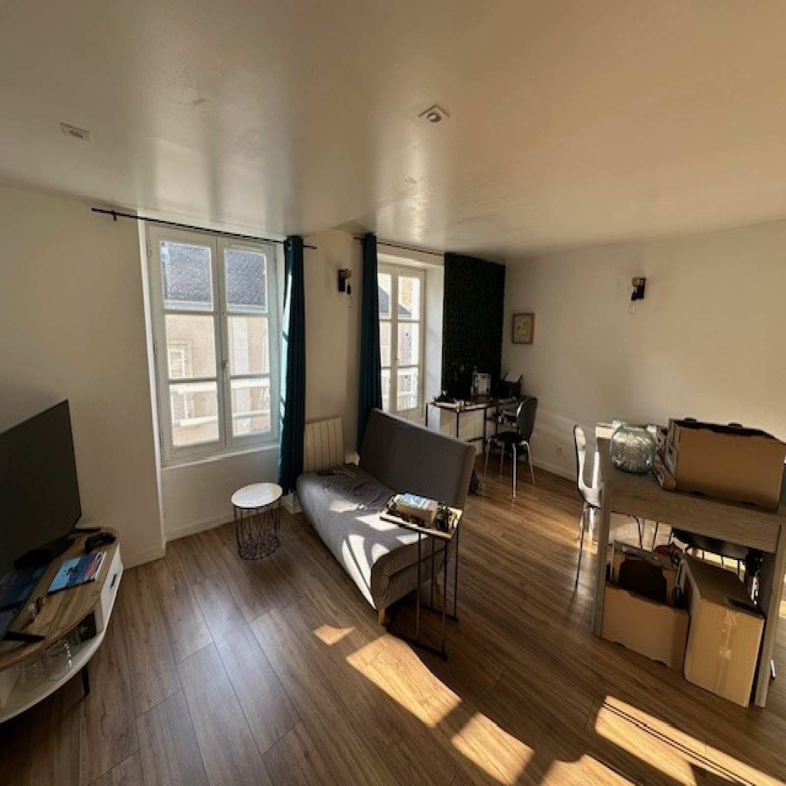 Séjour avec cuisine US équipée, chambre séparée, salle d'eau, wc.