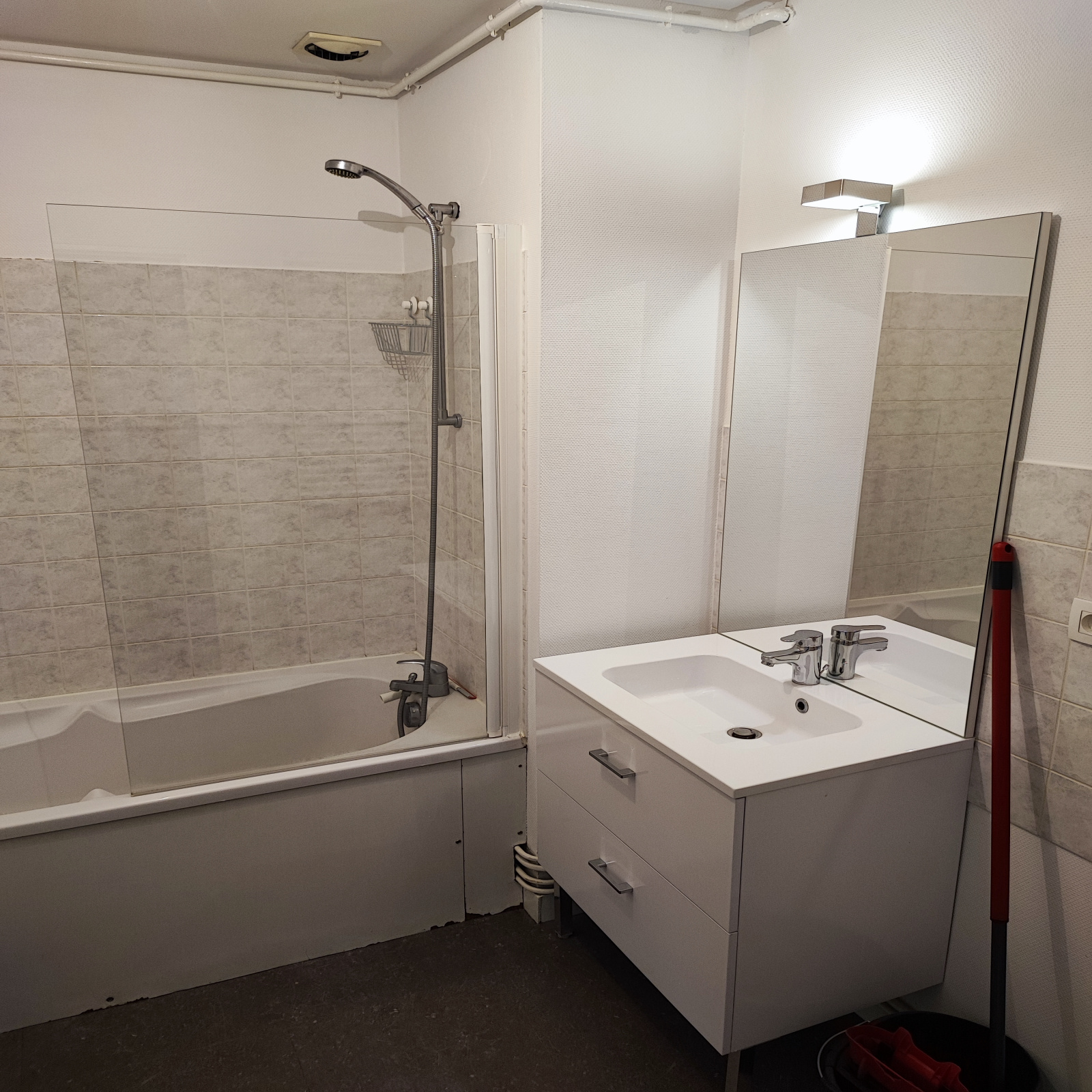 Appartement Type 1 au 3ème étage avec ascenseur : entrée avec placard, pièce principale, cuisine séparée, aménagée et équipée, salle de bains et WC. Chauffage au gaz. Calme.