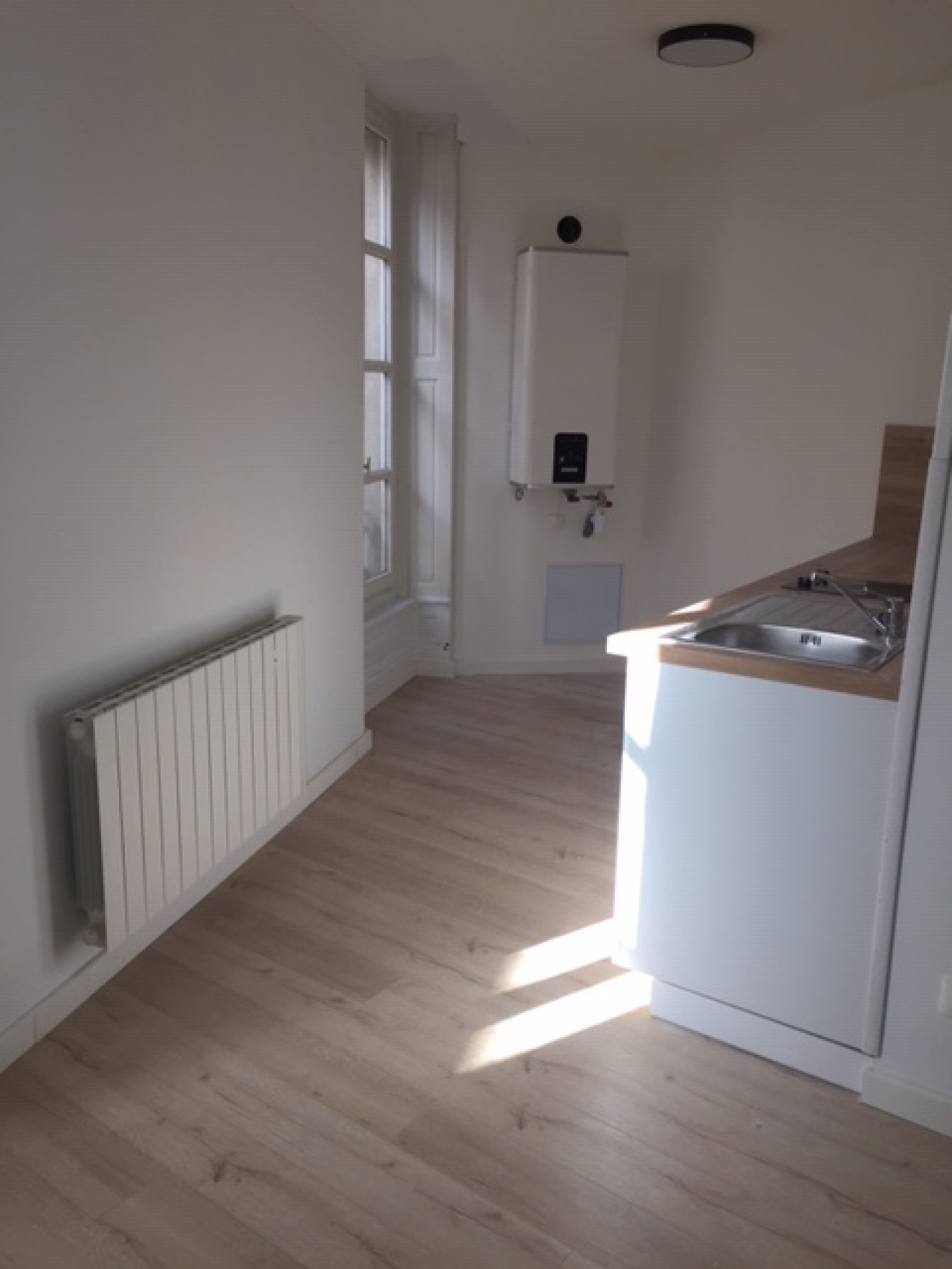 Appartement récent (rénovation en 2020) situé au 1er étage : séjour, cuisine semi-aménagée, chambre, salle d'eau, wc. Chauffage individuel électrique - Double vitrage.