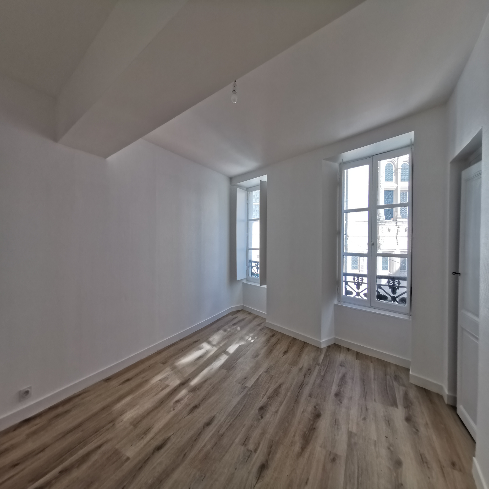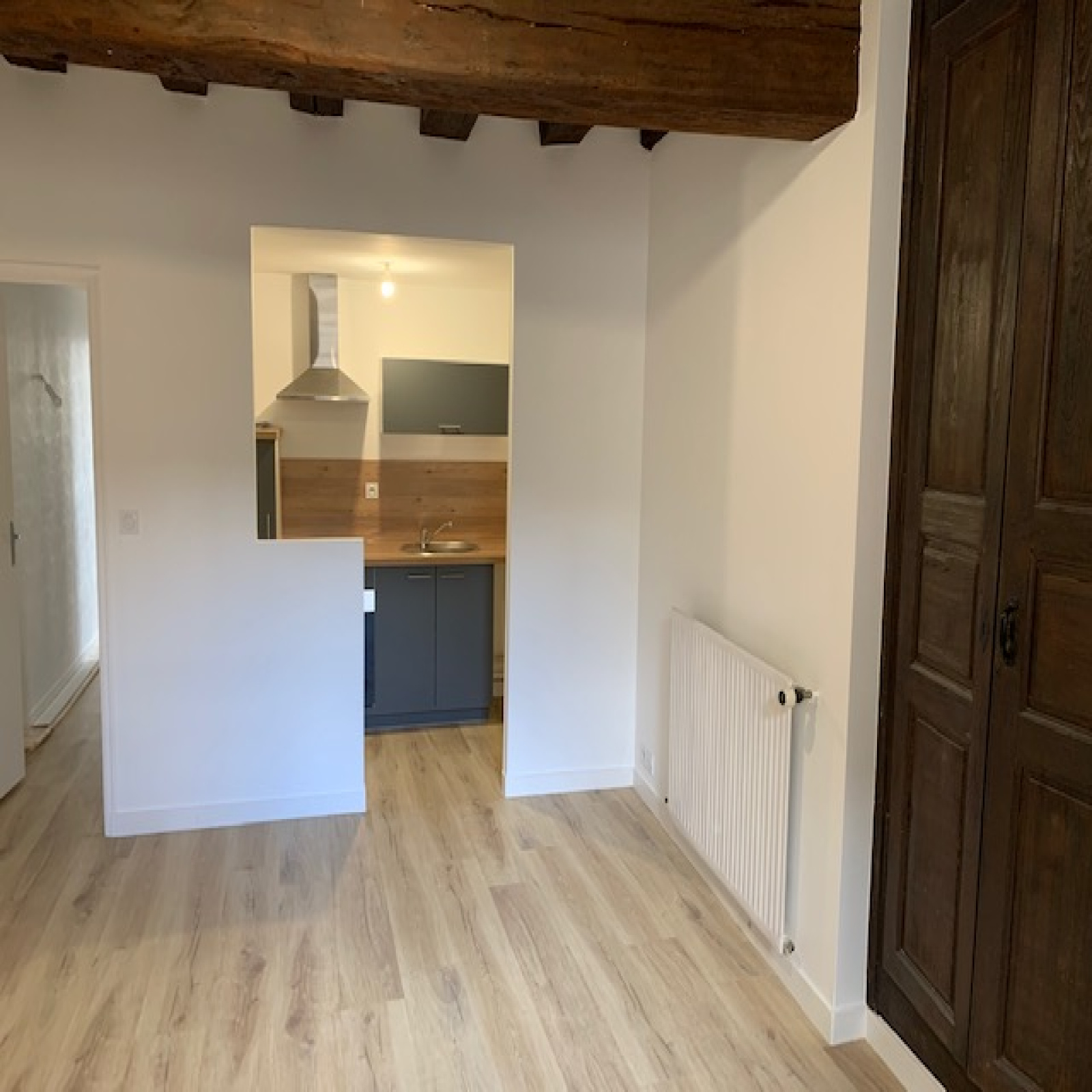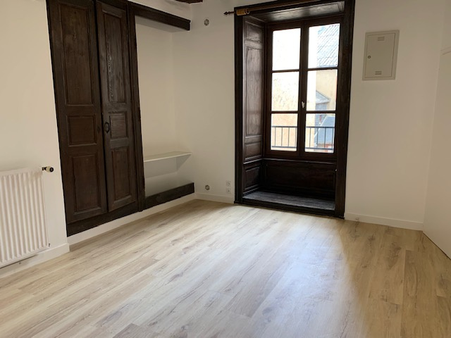 Appartement rénové au 1er étage (rénovation en 2020) : entrée, salon, cuisine aménagée, une chambre, salle d'eau, wc. Chauffage individuel gaz.