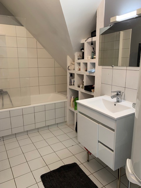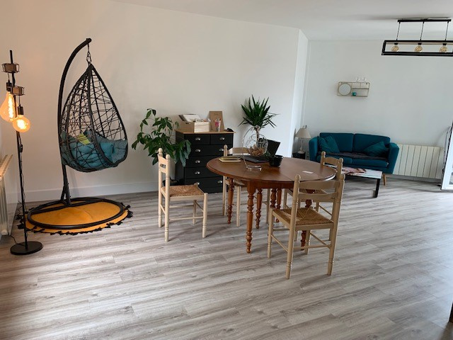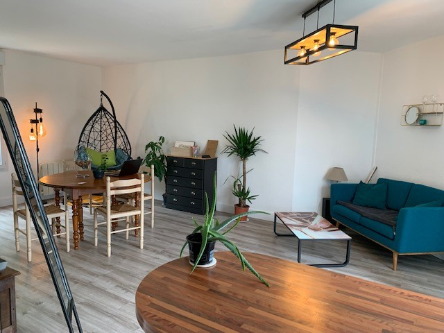 Appartement duplex situé au 3ème et dernier étage sans ascenseur : entrée, séjour-salon avec terrasse (5.67 m²), coin cuisine américaine et équipée (four, plaques, hotte, lave-vaisselle), cellier. A l'étage : palier, 2 chambres (dont 1 avec grand placard), salle de bains, wc séparés. Chauffage individuel électrique. Eau comprise dans les charges. 2 places de parking (N° 11 et 12)