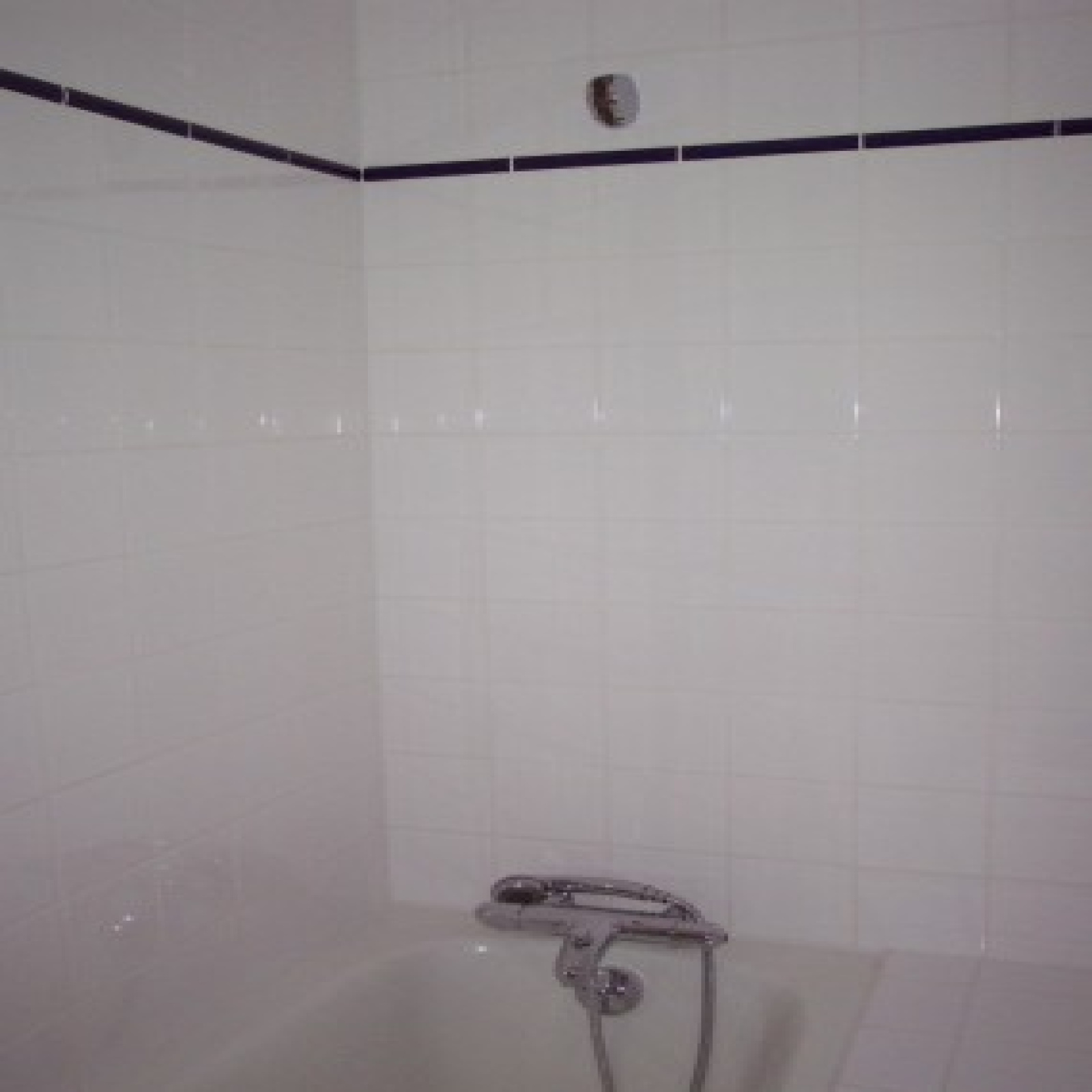 Studio avec meubles (bail en vide) : entrée, kitchenette équipée, coin nuit, salle de bains, wc.