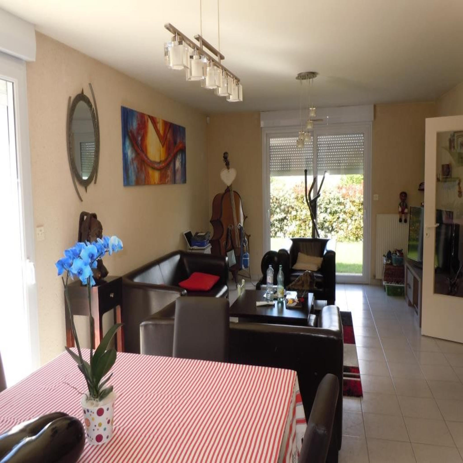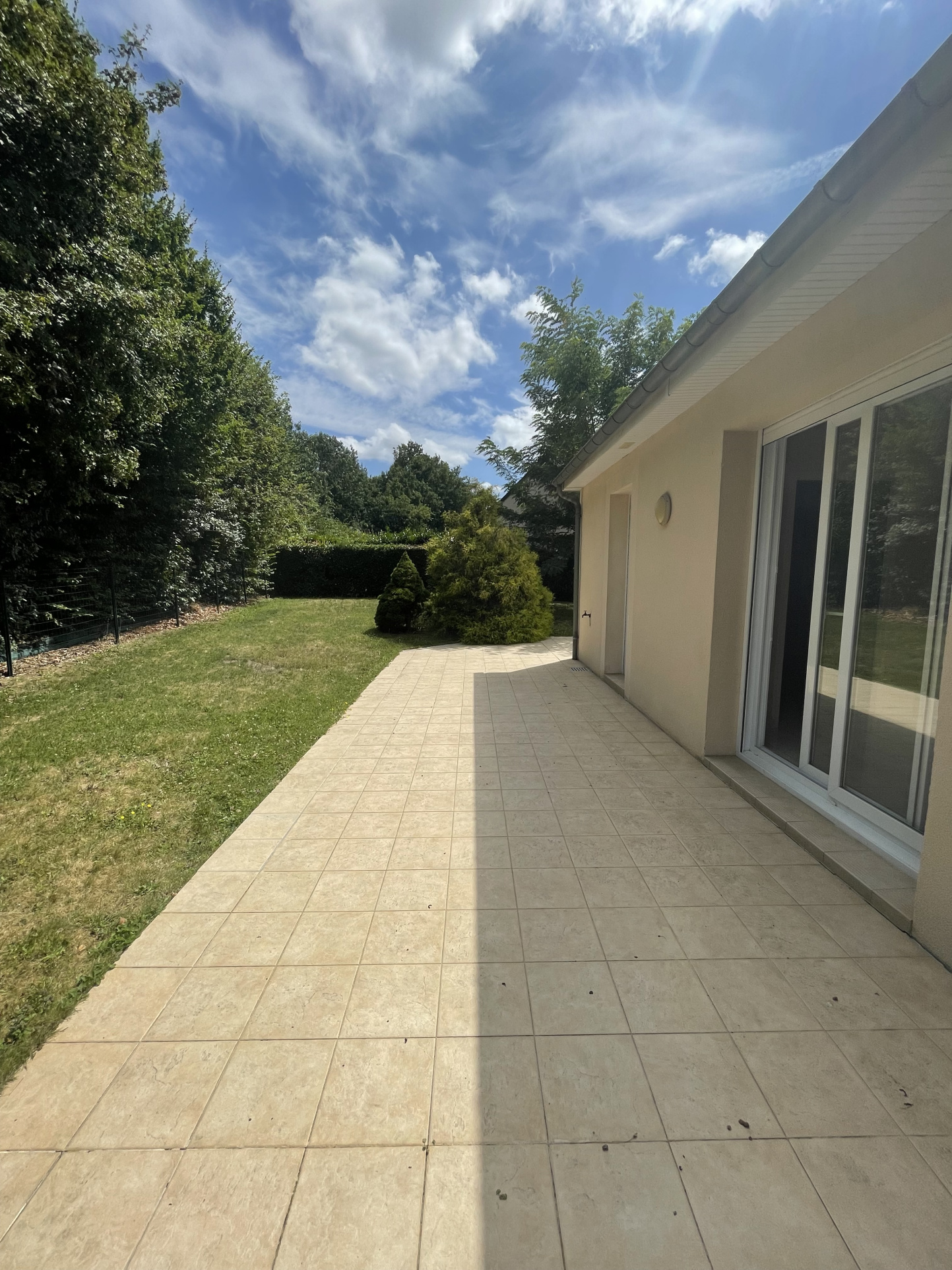 Pavillon d'environ 110m² habitable offrant, une entrée avec placard, séjour/salle à manger, cuisine aménagée et équipée (four, hotte, plaques), salle de bains, trois chambres (dont deux avec placards), une buanderie, un garage, une cave. Terrasse et jardin.