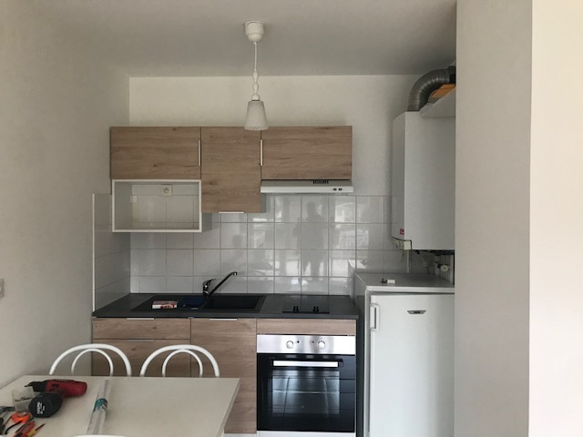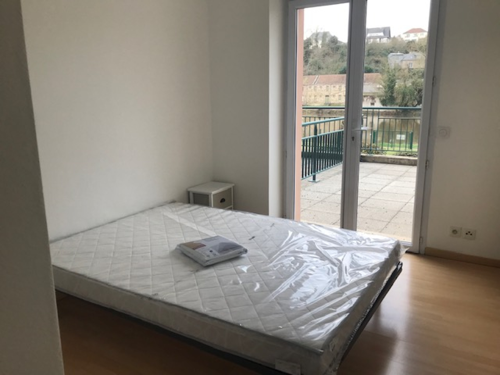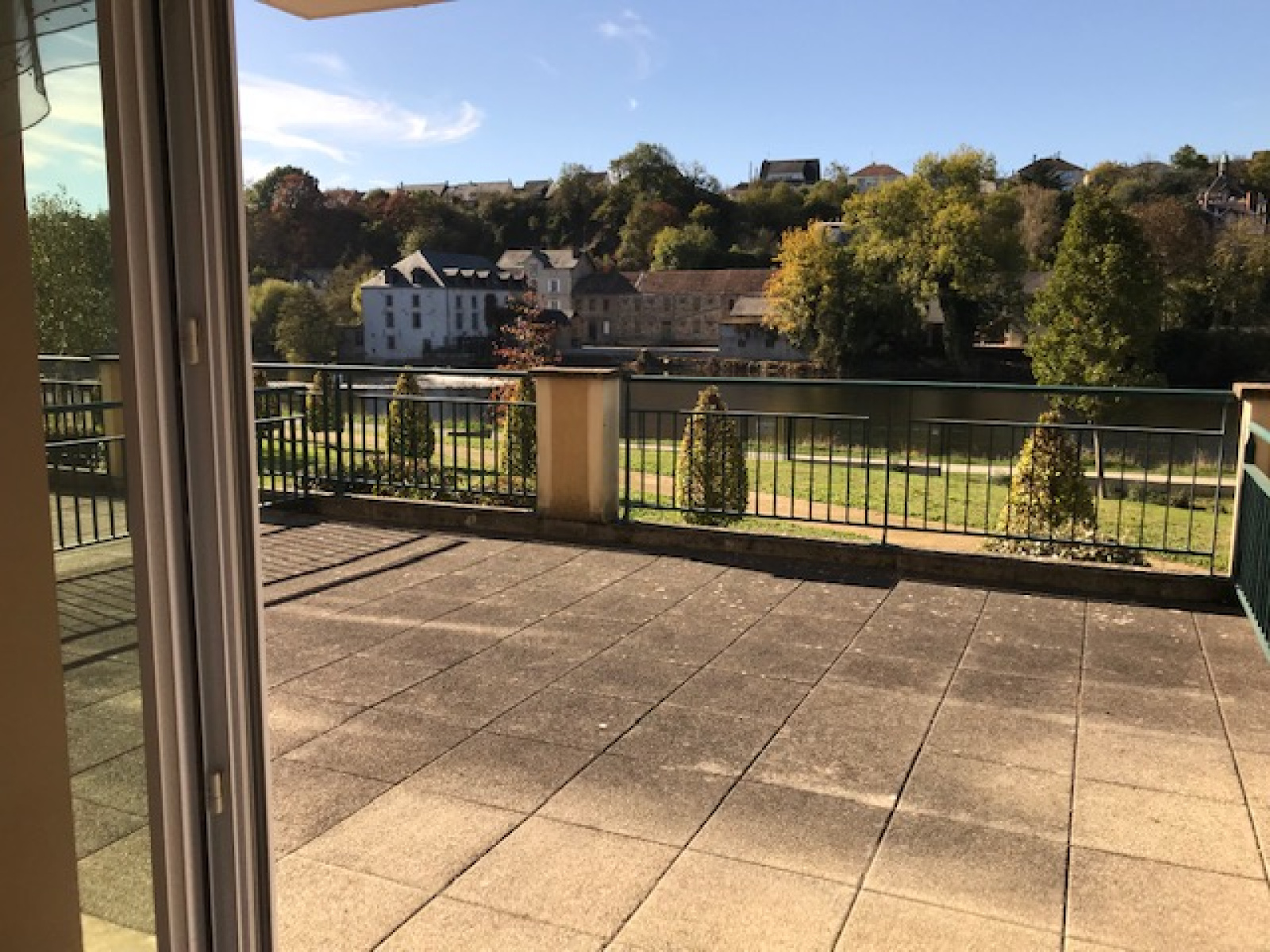 Appartement de type 2 : entrée avec placards, séjour avec coin cuisine équipé, chambre avec placards, salle d'eau avec wc. Parking. Cave. Terrasse de 20 m² avec vue sur la Mayenne. Chauffage au gaz. Entretien de la chaudière compris dans les charges.