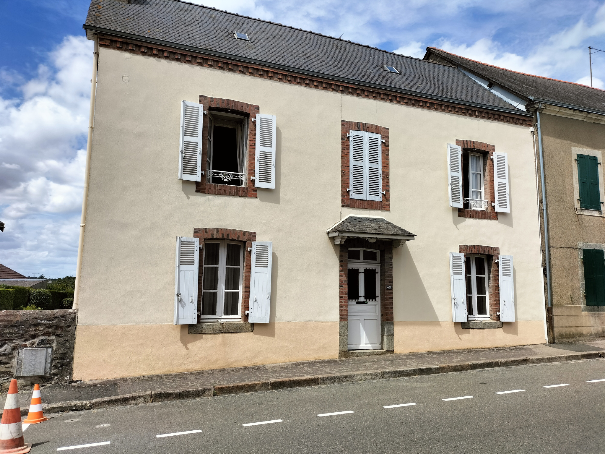 En exclusivité. L'HUISSERIE, une belle maison de bourg à rafraichir. Elle se compose au rez-de-chaussée : une entrée, un séjour, un salon, une cuisine, une salle d'eau avec wc, 2e wc et chaufferie. Au 1er étage : un palier desservant 4 chambres (dont une avec une terrasse d'environ 20m² sur jardin) et une salle de bains. Au 2nd étage : grenier sur tomette aménageable. Le tout sur un terrain d'environ 1173m² avec garage (38m² + grenier au dessus) et dépendances. Proches des commerces.